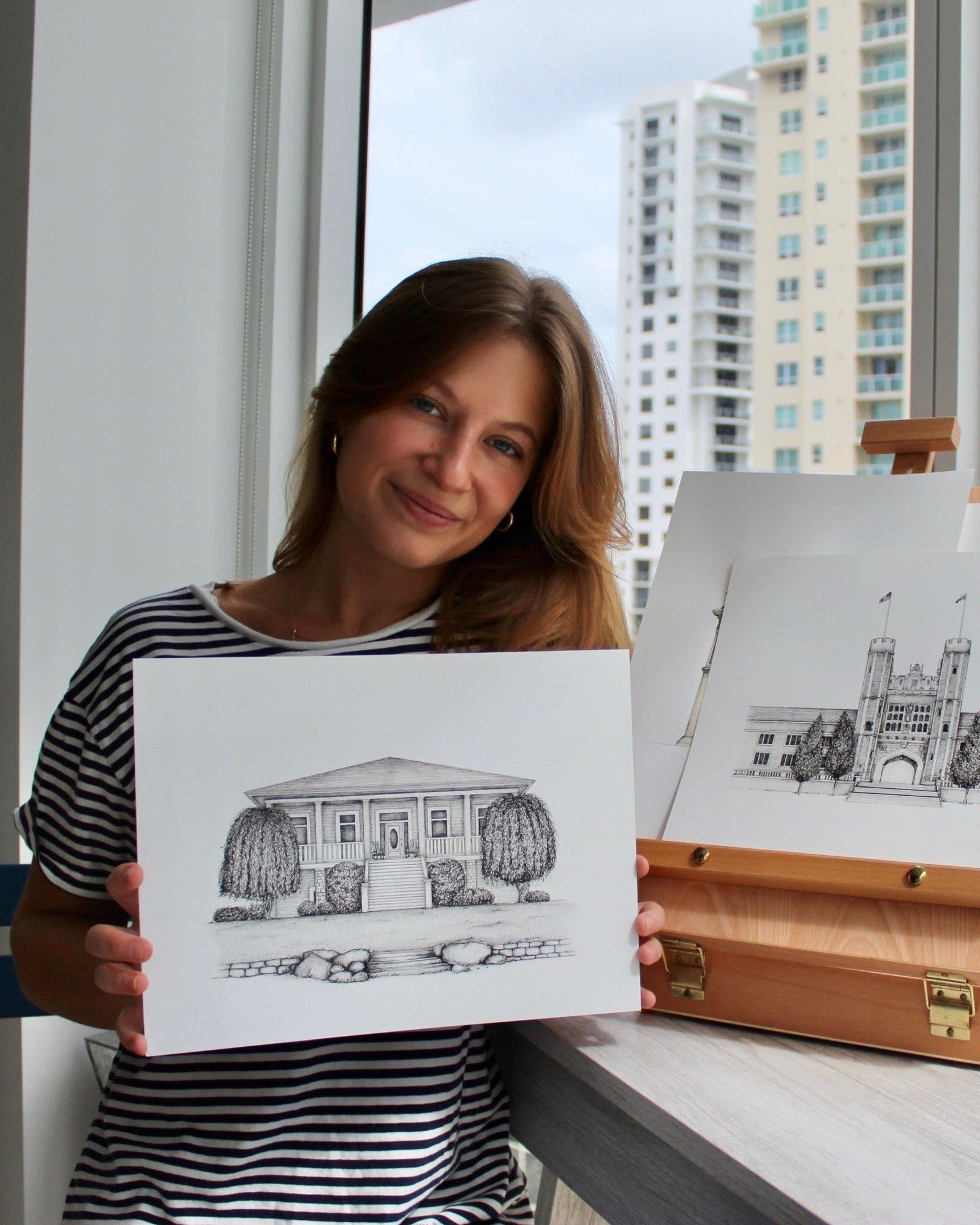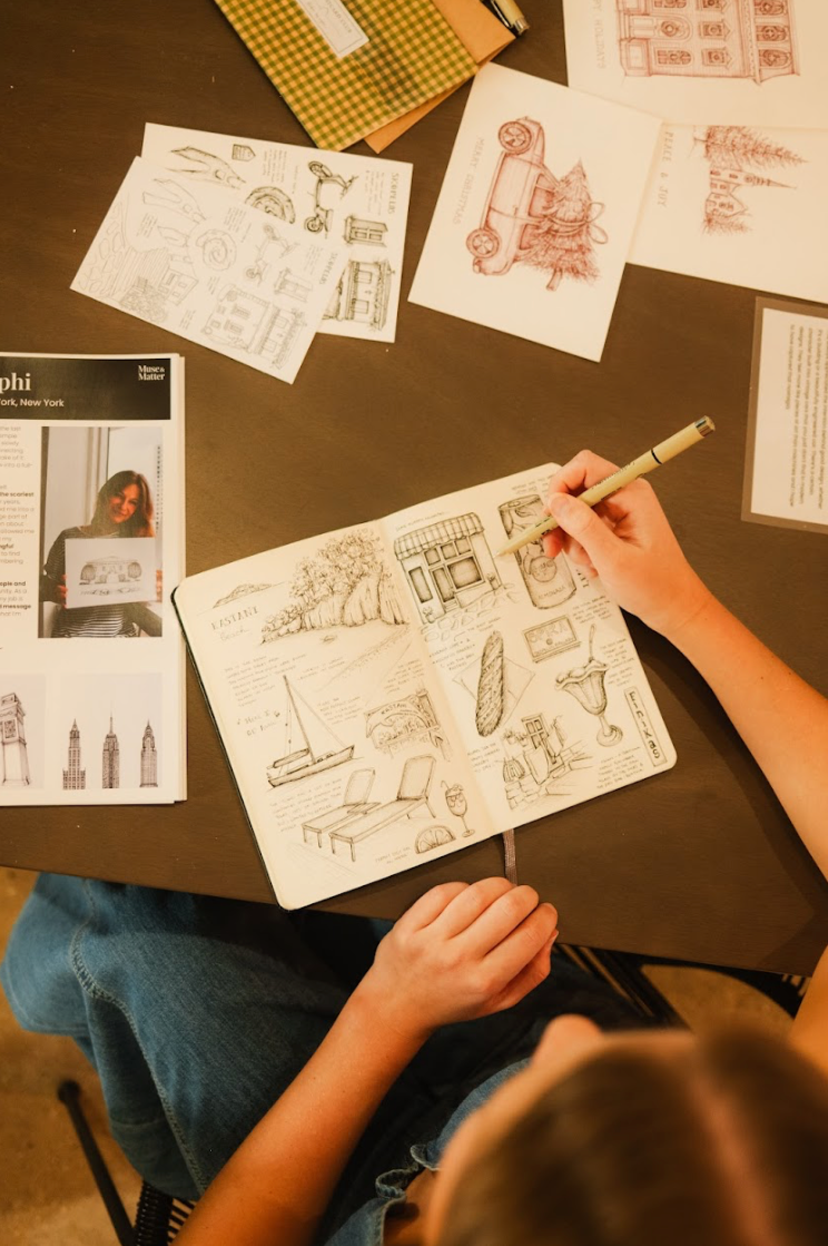 I’ve always been pretty independent, so entrepreneurship felt inevitable, but quitting my job to pursue my passion was the scariest thing I’d ever done. I studied and worked in architecture for years, which clearly shaped my drawing style, and probably turned me into a bit of a perfectionist. Knowing when to pivot has been a huge part of my evolution as an artist. Lately, my artistic journey has been about learning to loosen up and embrace imperfection. This has allowed me to explore new ideas and experiment more freely. I first built my business around commission-based work, drawing meaningful places and memories for others. Since then, I have worked to find inspiration in my own life, creating just for myself and remembering why I fell in love with art in the first place.