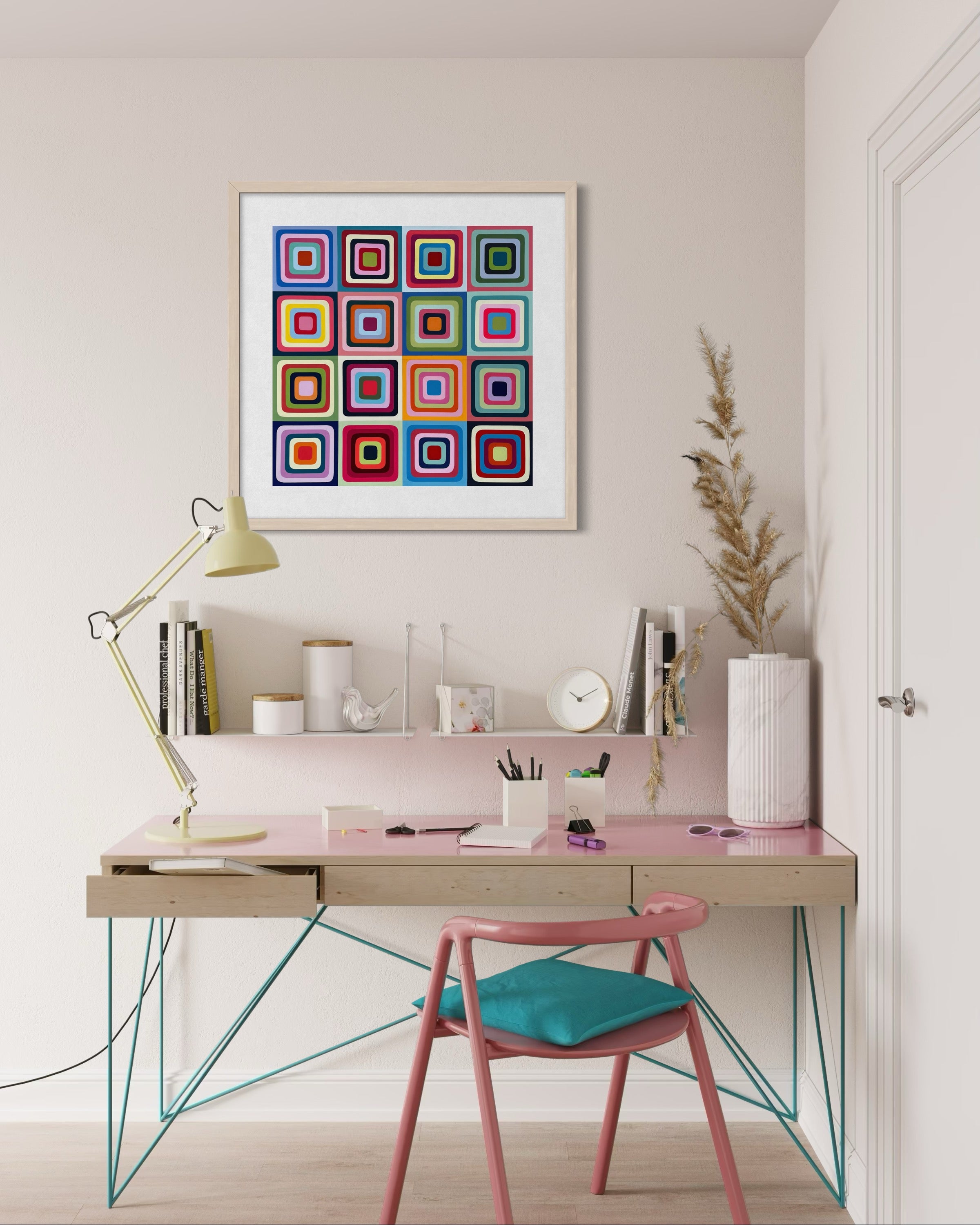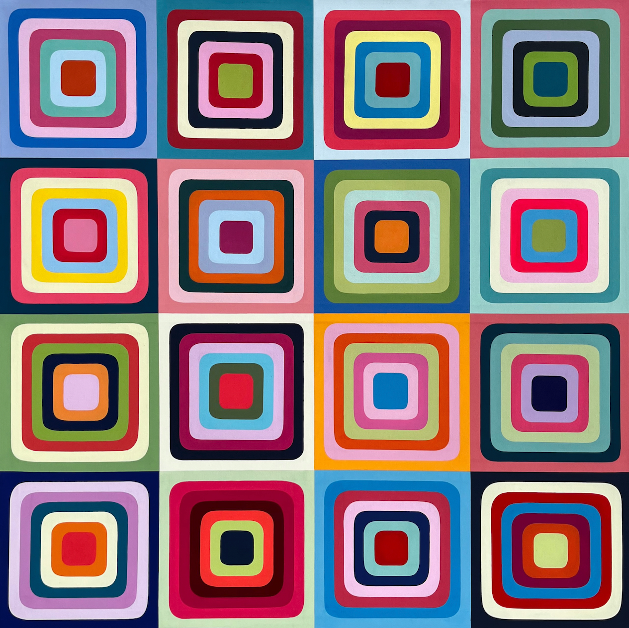 “Bloom” is an acrylic painting inspired by how unique color combinations create their own rhythm and energy. Each square expands outward like a quiet unfolding, showing how harmony can appear in unexpected places.